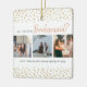 Ask your sister, bestie or neice to be your bridesmaid at your wedding with this chic stylish modern photo collage keepsake ornament. Featuring 3 square photos of you and then person your asking, with script font that can be changed to any colour. Decorated with faux gold confetti for that bit of sparkle! All text is easily customised using the template provided.