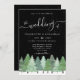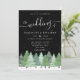 Celebrate your love with the enchanting beauty of nature in this Winter Woodland black and white Wedding Invitation. Featuring hand-painted watercolor fir trees in a snowy evergreen forest against a sleek black background, this elegant design blends rustic woodland charm with modern sophistication.