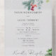 AVAILABLE WITH OR WITHOUT A QR CODE TO SCAN. This design has a pine and berries sprig on a winter grey background with falling snow. Add a QR code to your invitation so that gusts can quickly access your wedding Website for details, directions, menu options, and more, or add your gift registry Web URL. Personalised All-In-One invitations are a unique combination of both a beautifully printed custom invitation with an easy to tear off perforated RSVP postcard. And they are so easy to use! You simply fold, then seal the back flap with the three included clear stickers, and mail. And when your guests receive your custom invite, they just tear the perforated RSVP Card off and drop it back in the mail to you!