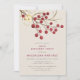 Beautiful chic rustic birthday invitation for a winter birthday party. It features red fire berries on a bare branch decorated with a gold bell and twine.