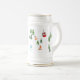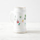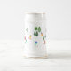 Aprés Snowboarding theme white beer stein with colourful freeride snowboarders, riding down a winter mountain