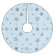 Simple, modern and wintery tree skirt features large snowflakes pattern on light pastel blue background.