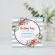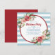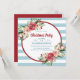 Modern Christmas Party Invitation design featuring watercolor winter florals and blue stripes background.