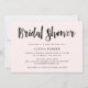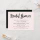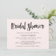 This fresh and modern bridal shower invitation features trendy black handwritten script on a chic, blush pink background with a rich black back.
