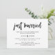 This fresh and modern post-wedding brunch invitation features trendy handwritten script that says "just married," for a chic, black and white look with a blush pink back.