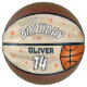 Modern Wood Court Happy Birthday Keepsake Basketball. Personalise it name and age. The design has a basketball image on a wood court floor background. A great birthday gift for a basketball player or basketball fan and a keepsake to remember the favourite sport.