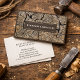 A professional woodworker business card featuring a beautiful wood grain with border frame. Rustic earthy modern style tree stump cross