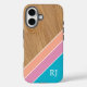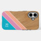 Add a touch of modern style to your everyday essentials with this chic personalized iPhone case. Featuring a warm wood grain texture paired with soft diagonal color block stripes in blush, peach, and teal, this design blends natural elegance with contemporary flair.
