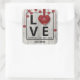 Modern Wood Valentine's Day LOVE Red Hearts Rustic Square Sticker