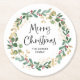 Modern Wreath and Script | Merry Christmas Round Paper Coaster