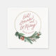 Hand Drawn holiday botanicals adorn a sleek golden ring to create a modern holiday wreath. The wreath surrounds a custom hand scripted greeting of Eat Drink and Be Merry. Personalise these napkins with your family name or a friends to give as a gift.