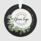 Spread holiday cheer and promote your brand with this custom Christmas ornament. Customise the ornament by adding your logo, a festive greeting, a personalised message, the current year, and your company name. The front of the ornament features a modern wreath illustration with vibrant green leaves and delicate white florals, all framed by a sleek black colour.