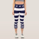 Modern yachts on navy blue and white striped Capri Leggings. Trendy nautical blue and white leggings!