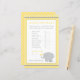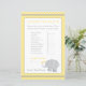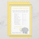 Baby shower 'Guess the Price' game card features an adorable little newborn baby elephant calf with heart shaped splashes and custom text. The design combines a pattern of classic diagonal stripes with playful polka dots and includes a modern gender neutral colour scheme of sunshine yellow, grey and white.
