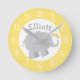 Modern Yellow and Grey Elephant Custom Monogram Round Clock
