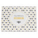 Modern Yellow Bee Honeycomb Kids Summer Birthday Large Gift Bag with personalised name completes the theme-matching party perfectly. The design features a bees and honeycomb with simple shapes and black outlines on a white background. Yellow accents add a touch of colour to the symmetrical, minimalistic design.