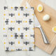 Modern Yellow Bee Pattern Black Elegant Monogram Tea Towel