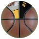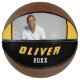 Modern Blue Black Custom Name Text Photo Basketball. Black and yellow background with yellow and white text. Personalise it with your photo, name and the year - you can change any text on the basketball or erase it. A perfect gift for a basketball player, coach, friends and family. Great keepsake to remember your favourite sport.