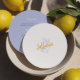 The minimal composition keeps it refined while the citrus illustration adds a subtle decorative touch.
