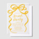 Celebrate your graduate in style with this Modern Elegant Yellow Bow graduation party invitation! Featuring a bold yellow bow beautifully framing the party details on a sheer vellum background, this invitation exudes sophistication and charm. The trendy yellow script font adds a stylish and contemporary touch, making it the perfect choice for high school and college graduation celebrations. Set the tone for an unforgettable event with this chic and elegant invitation!