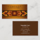 Stylish modern business card with piece of a yellow, red and brown mandala showing on the front with a brown background. Click customise to have more control over font choices and the use of text space.