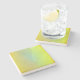 Bright yellow, orange & light blue geometric gradation with slight marbled effect.