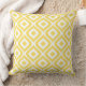 Square accent pillow design features a stylish wavy diamond geometric graphic pattern. Colours are white and bright lemon zest yellow