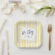Modern Yellow Hand Written Pinstripe Italy Wedding Paper Plate