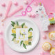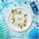 Modern Yellow Lemons Frame & Leaves With Name Paper Plate