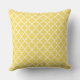 Square accent pillow design features a stylish graphic Moroccan quatrefoil pattern. Colours are white and bright lemon yellow