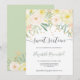 Romantic and elegant floral watercolor sweet sixteen birthday party with hand painted pastel green, light mint green yellow flowers arrangement and modern and chic script calligraphy with gold glitter confetti..