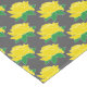 This tablecloth is perfect for those that want that "Pop" of colour in their country kitchen! This quality table cloth features yellow modern style roses silhouettes rimmed in white with green leaves. The background is a slate grey.