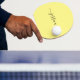 Modern ping pong paddle with a yellow background and a black hand lettered script. Personalise with your name.