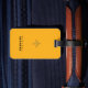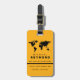 Nice yellow bag-tag... elegant and modern design to help identify your baggage at the airport... custom name... templates for information about you... with the image of the map of world and an aeroplane
