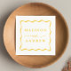 Modern Yellow Wavy Frame Wedding Napkin