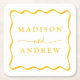 Modern Yellow Wavy Frame Wedding Square Paper Coaster
