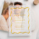 Introducing our Modern Yellow Wavy Frame vellum wedding invitation, a perfect fusion of boho charm and retro elegance. Featuring bold yellow lettering on a sheer vellum background, this invitation is framed with a playful yellow wavy border that adds a touch of vintage-inspired whimsy. Fully customisable, this design allows you to showcase your names and wedding details in a unique and stylish way. Ideal for couples seeking a fun, modern, and nostalgic invitation, this vellum wedding invite sets a joyful and sophisticated tone for your special day. Perfect for any celebration where love and style come together beautifully.