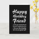 Celebrate your friend's birthday with a laugh. This funny card features a sleek, black and white design with striking typography.