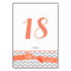 Modern chevron or zigzag pattern in grey and white with coral bow printed table number card to compliment our invitation set, can be personalised and ordered individually. All parts of this card are printed, there is no real ribbon attached.
