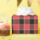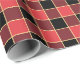 This gift wrapping paper features a modern version of a classic buffalo check pattern in red and black with a yellow line accent. This design was created with an SVG image in which all of the elements feature colours that may be customised by the buyer to any hue.