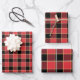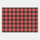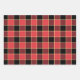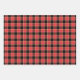 A modified version of a classic buffalo check pattern in red and black with a yellow linear accent is featured on each sheet of this 3 piece wrapping paper set. This design was created with an SVG image in which all of the elements feature colours that may be customised by the buyer to any hue. Each sheet is a different scale and must be customised independently.