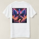 This super fine a Men,s T-shirt,s front side fashion with a death metal design with a grotesque and disfigured carnival with light colour background for t-shirt design.This amaging T-Shirt,s back side a dynamic male devil angel, with wings that blaze with the trails of shooting stars, racing across a keyboard that spans the cosmos, representing the astronomical speed and agility demanded in esports. with light colour background for t-shirt design.