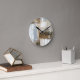 The clock did not take as long to arrive as I thought it might and was extremely well packaged. I didn't do the measurements so I didn't realize it is a little smaller than the average clock but that does not matter (just make sure you check if that's important to you).It is really nifty! It seems very solid and well made not flimsy at all. It has been going well and has kept good time in its few weeks on my wall. Nice product. Gets noticed too! Nicer in real life than the picture but true to the picture