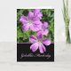Moederdag, Mother's Day in Dutch, paper greeting card. Blank inside for your personal message. Card has an image of Cranesbill geraniums in shades of violet and lavender colors. Botanical, floral themed greeting card. Art, image, and verse copyright © Shoaff Ballanger Studios.