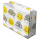 A pattern of cute smiling sunshines, blustery wind clouds, and happy rain clouds - inspired by a Manx Gaelic nursery rhyme called Moghrey Mie Ghrian (Good morning Sunshine)