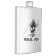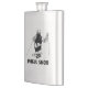 The product is a good size and came exactly as it was pictured. The lid is not attached to the flask, which could be dangerous on drunken nights... The print came out surprisingly well and looks very sharp. Would definitely recommend.