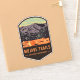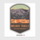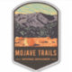 A vintage travel badge design of the dramatic desert and sand dunes of Mojave Trails National Monument surrounding the Mojave National Preserve located in California.