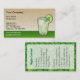A glass of Mojito cocktail. Removable background image. Removable cocktail recipe at back side of the card. Custom text fields at front.