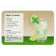 A glass of Mojito cocktail on green and beige background. Cocktail recipe. Custom text.