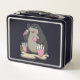 This is a standard metal lunchbox that appears to work just fine. We designed this box ourselves with an uploaded photo and custom text on the front and back. It looks absolutely beautiful except the front of the lunchbox is not centered like it shows in the photo. The print borders don't align with the inset flat part of the box where the preview photo online showed it perfectly centered in there. The back looks nice and centered though.